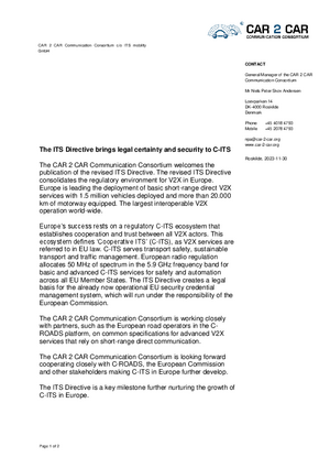 C2C CC welcomes the publication of the revised ITS Directive