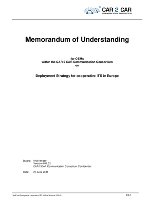 MoU on Deployment Strategy for C- ITS in Europe
