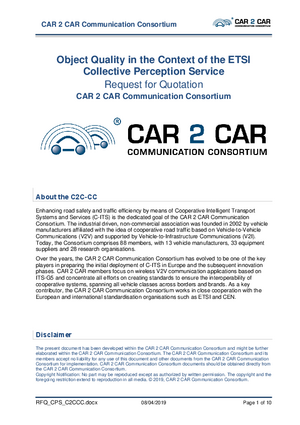 Request for Quotation on Object Quality in the Context of the ETSI Collective Perception Service