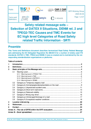Safety related message sets – Selection of DATEX II Situations, DENM rel. 2 and TPEG2-TEC Causes and TMC Events for EC high level Categories of Road Safety related Traffic Information - SRTI